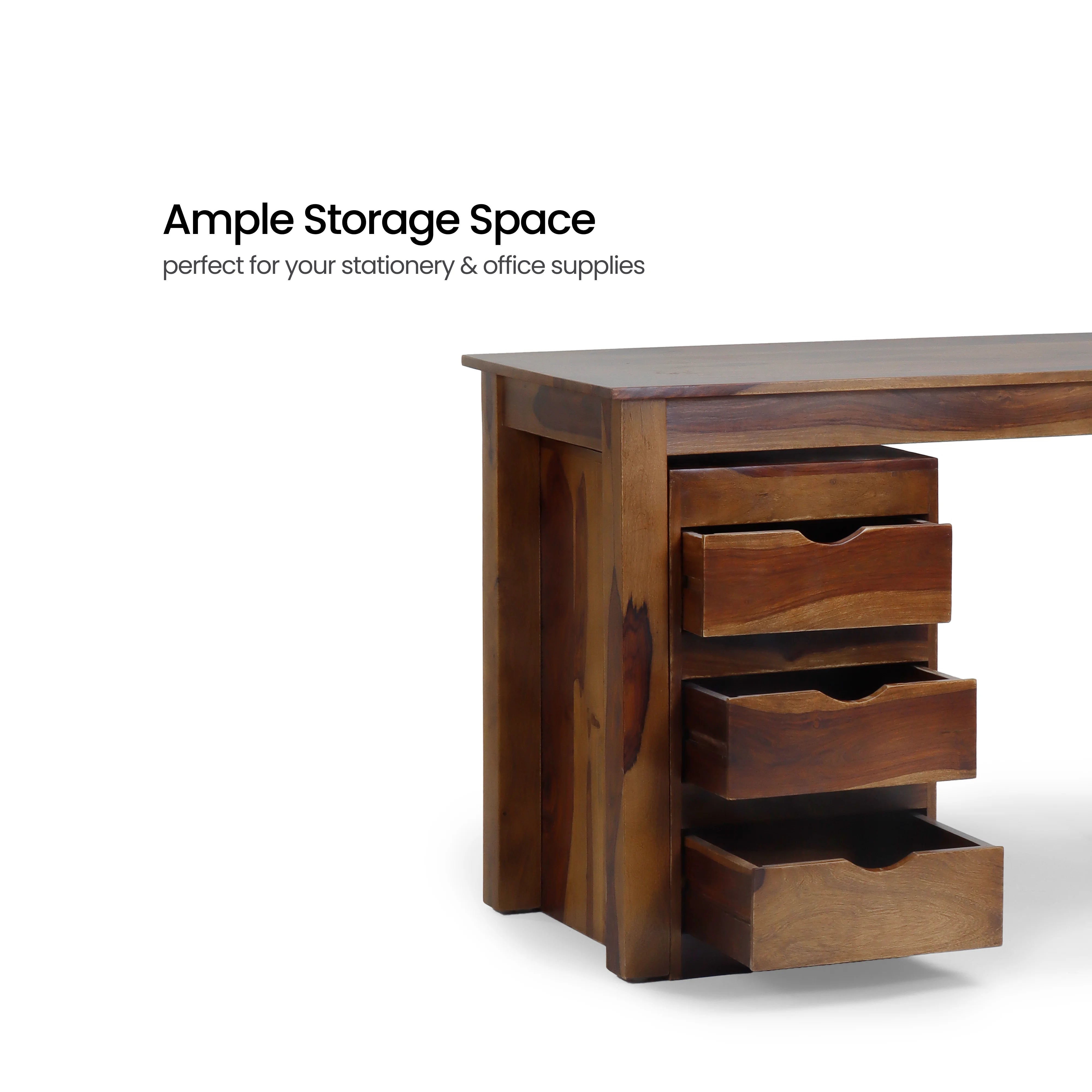 A functional and elegant study table, designed to provide a productive workspace with ample storage.