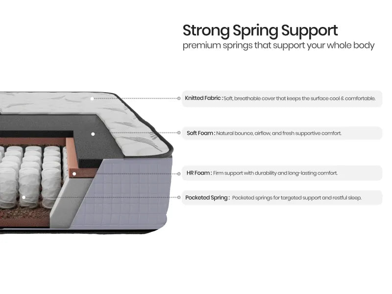 Comfortable spring mattress with premium quality which cradle you in comfort while keeping your spine perfectly supported. Sweet dreams guaranteed!