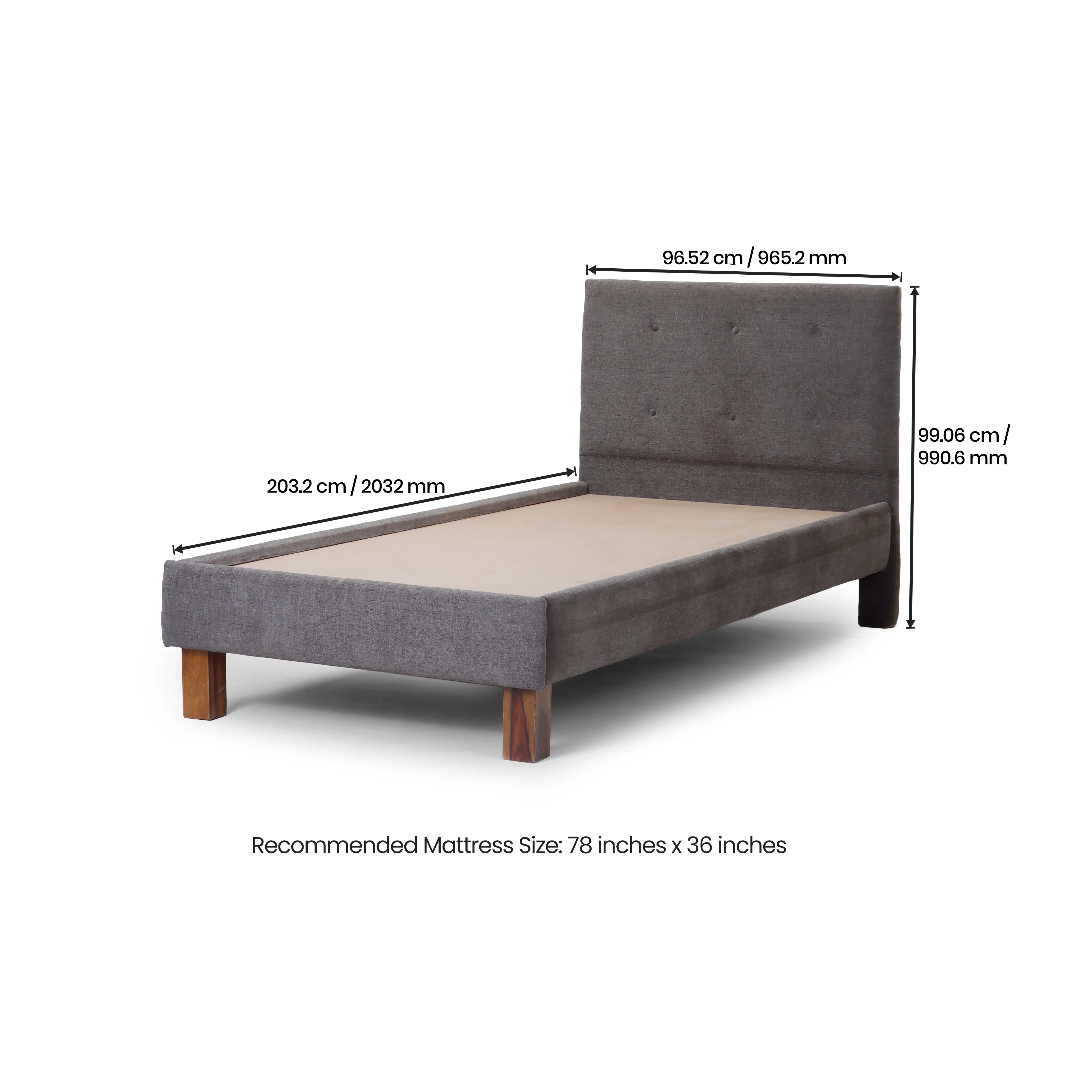A single bed frame from the Soho collection, perfect for smaller bedrooms or guest rooms. Measures 36x78 inches, providing comfort and a sleek design.