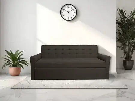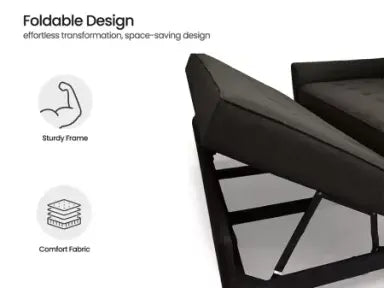 A bold and elegant sofa cum bed in a rich dark grey color. Ideal for adding a touch of luxury to your home decor, with the added convenience of transforming into a bed.
