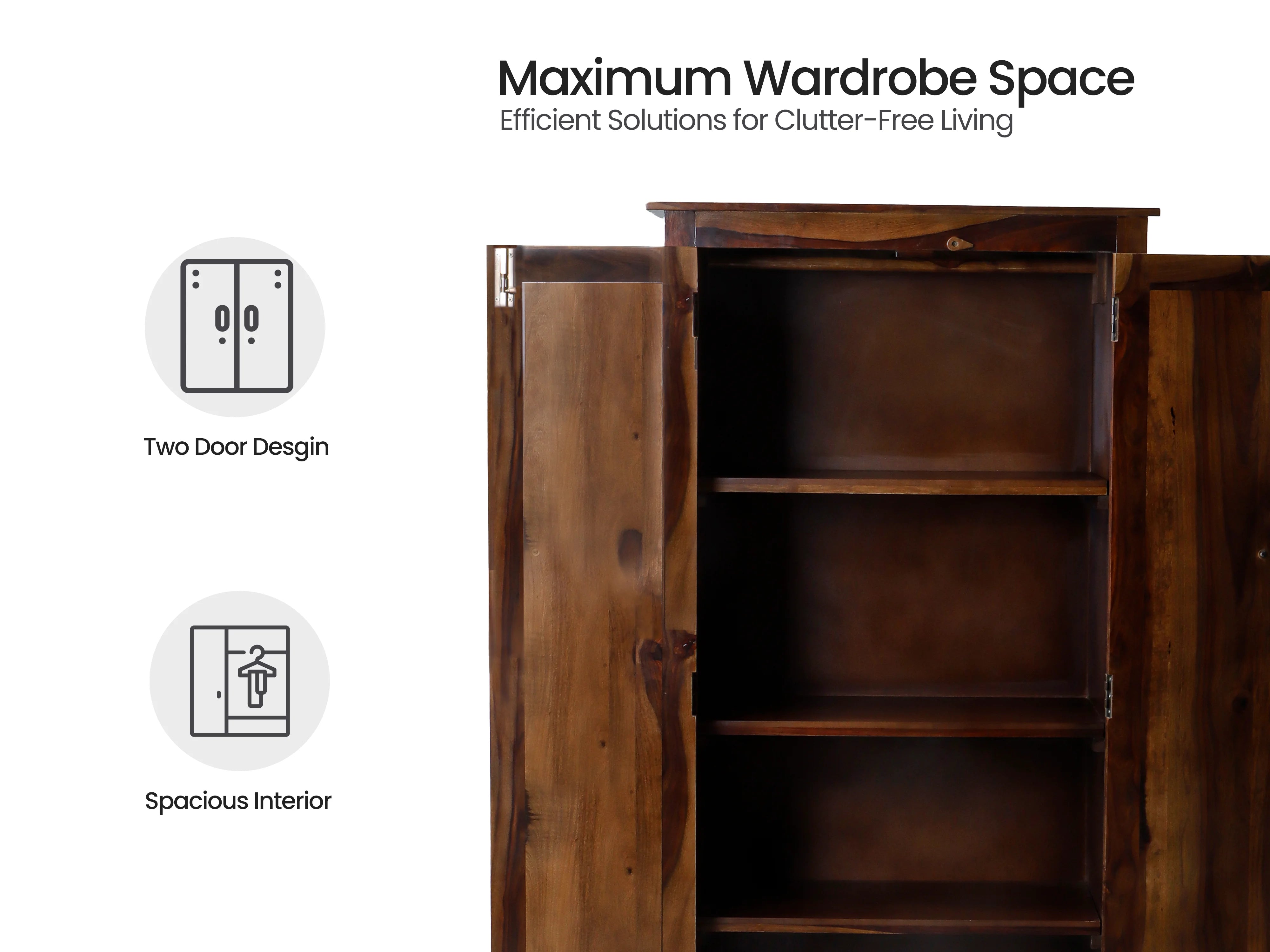 A classic wooden wardrobe with ample storage space and a refined finish, designed to keep your clothes and accessories organised and accessible.