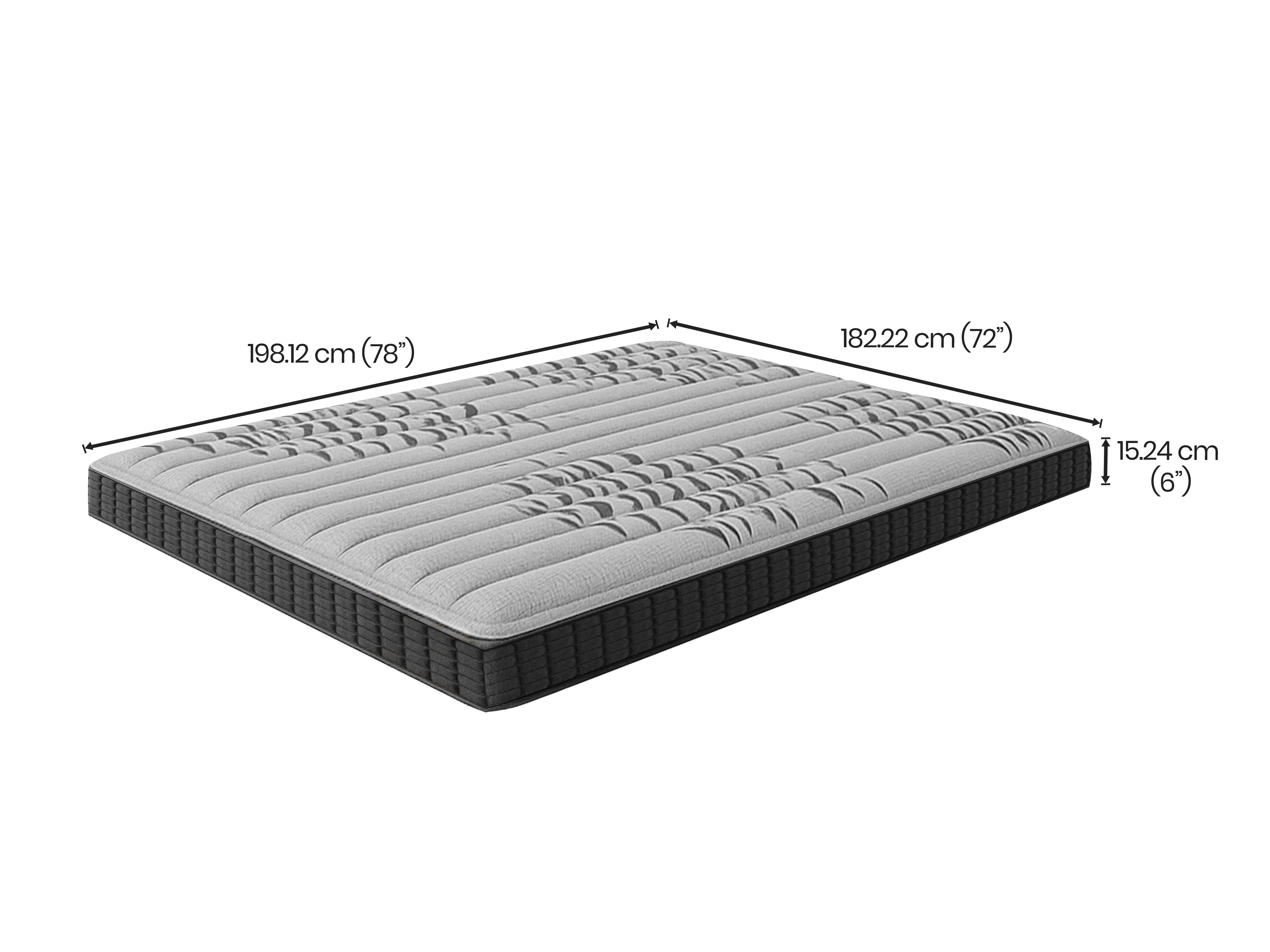 A king-sized memory foam mattress designed for ultimate comfort and support. Measures 78x72x6 inches, ensuring a restful night's sleep.