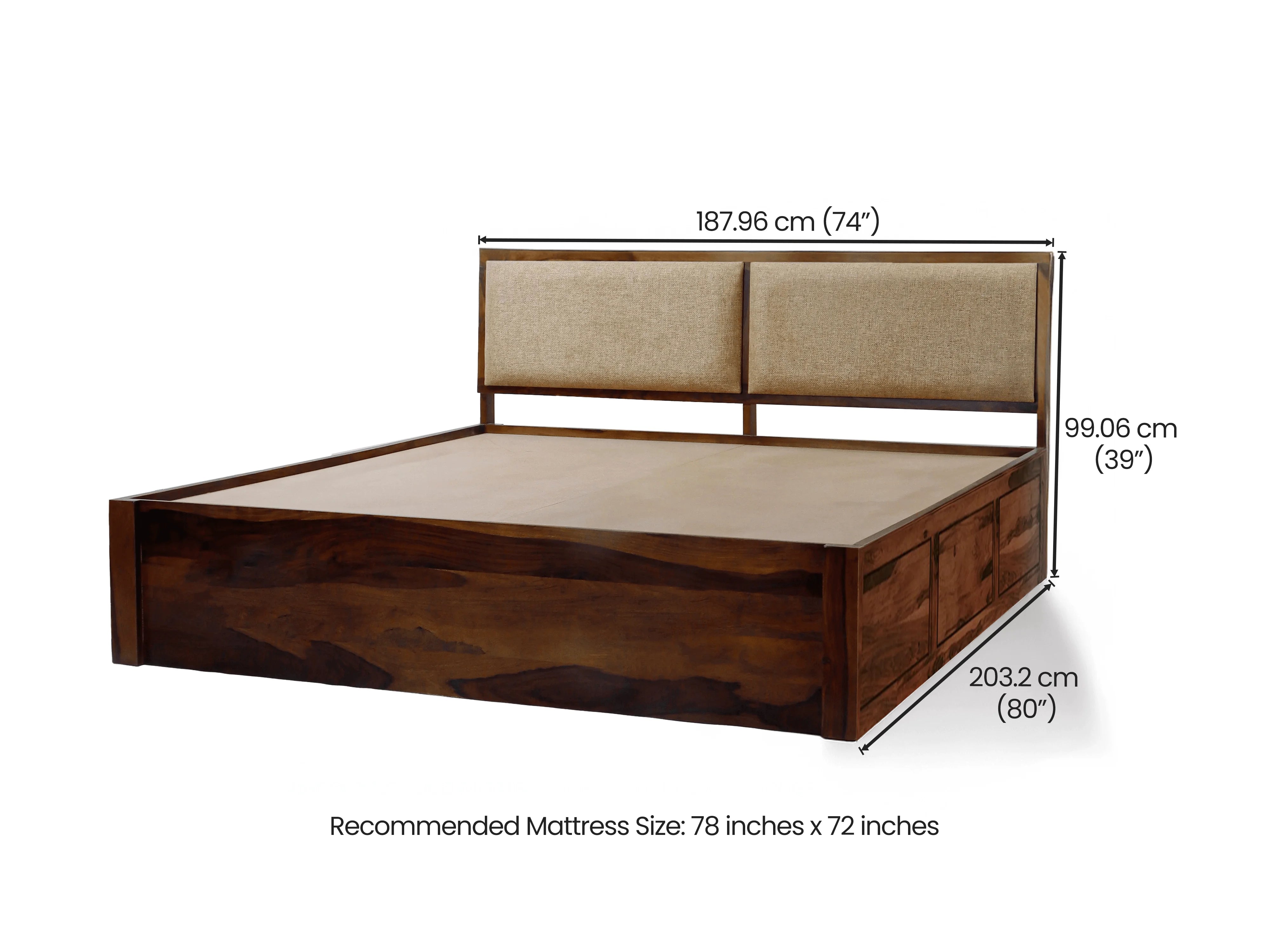 The Vesta king bed frame featuring hydraulic storage for easy access and organization. Offers both style and functionality.